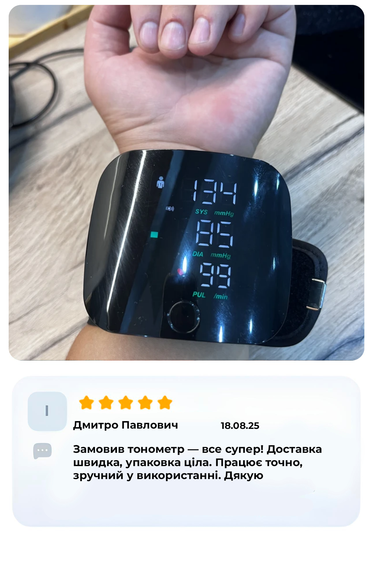 Одягніть тонометр на зап’ястя, і він автоматично виміряє