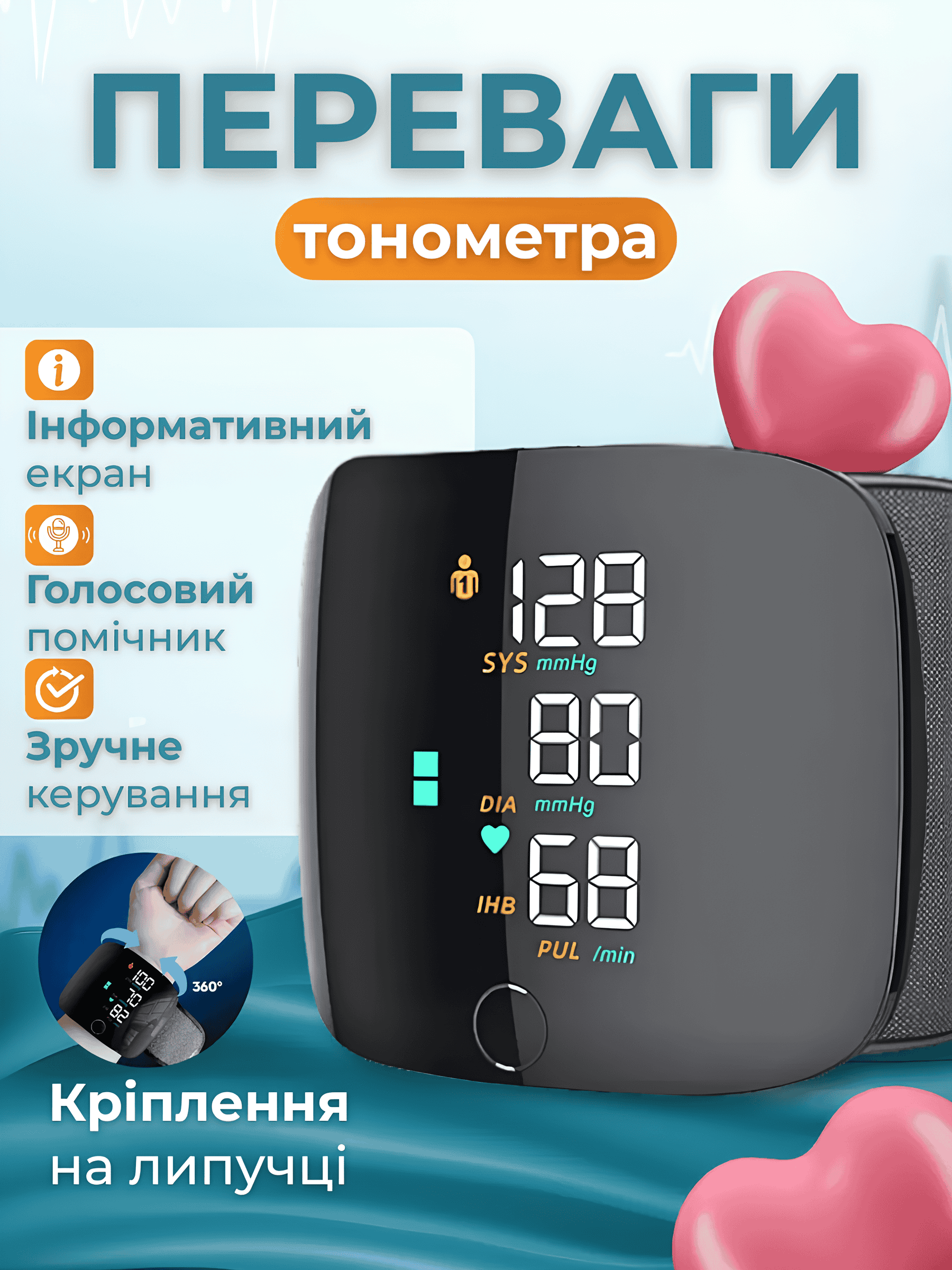 Одягніть тонометр на зап’ястя, і він автоматично виміряє