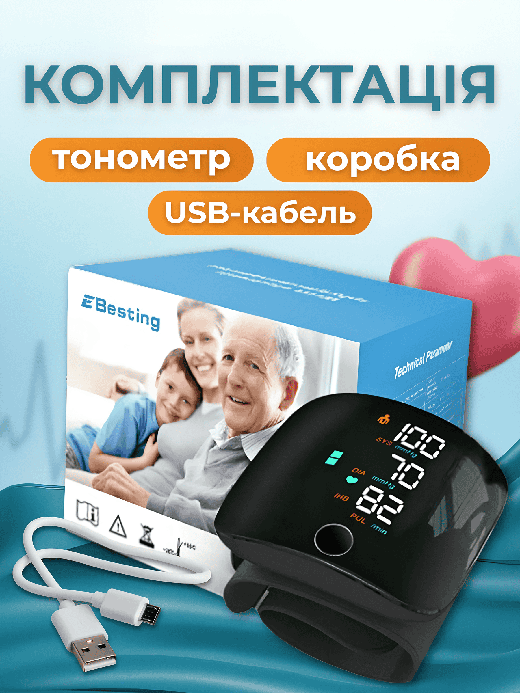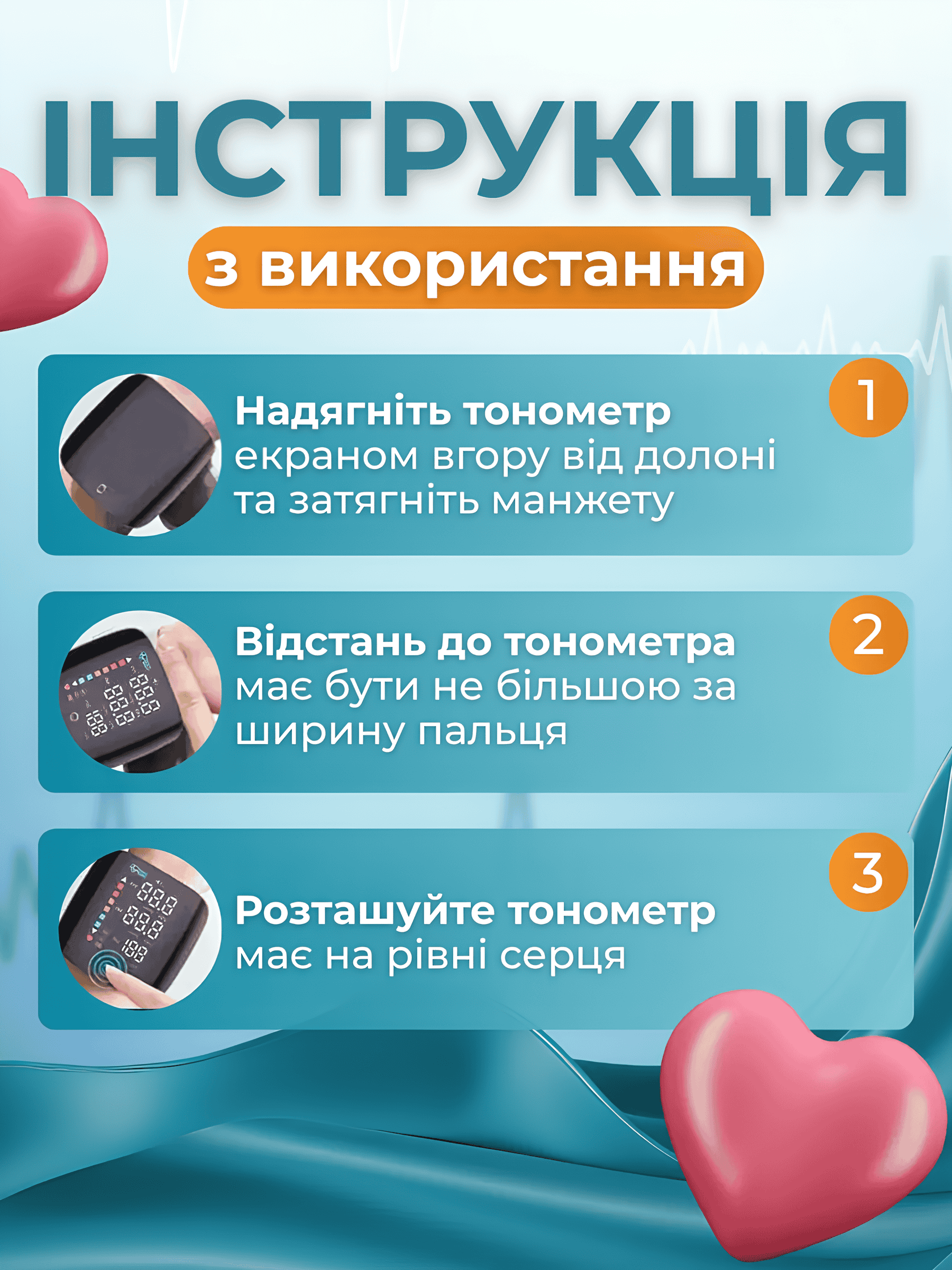 тонометр на зап’ясті, а руку розслабленою на рівні серця. Завдяки правильно підібраній універсальній